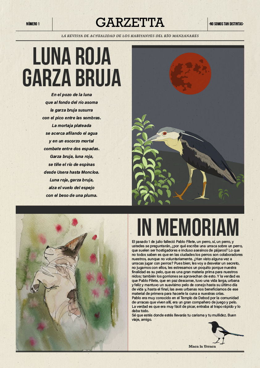 Su directora es una Gallineta común que nació en el ya renaturalizado río Manzanares y bajo una irónica mirada ecologista se hace esta revista, con plumas invitadas, noticias de actualidad ya sea del río o de la ciudad o de otras aves de paso que cuentan su experiencia o denuncian actuaciones humanas nocivas para el medio.